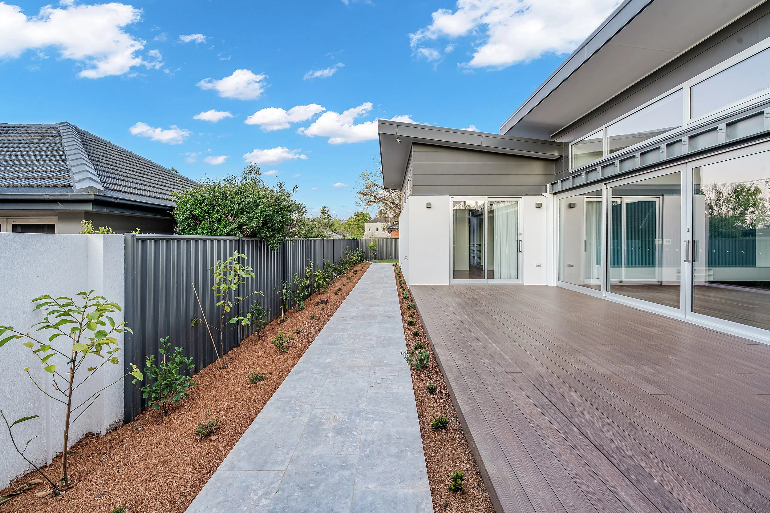 The result is a refined, elegant outdoor space that feels cohesive with the home’s heritage while providing a practical and welcoming garden for modern living.